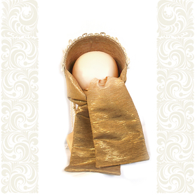 Сзади широкая резинка, спрятана в бархат и бант (из бархата или атласа) большого размера.