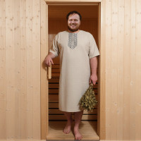 Косоворотка Оберег, белый хлопок с зеленым