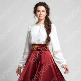 Косоворотка Оберег - выполнена из льна белого цвета, украшена жаккардовой лентой шириной 3 см синего цвета. Косоворотка смотрится стильно и современно, сочетается с современными элементами одежды, хотя содержит в себе элементы традиционного кроя и орнамента. В комплект входит пояс-кушак.