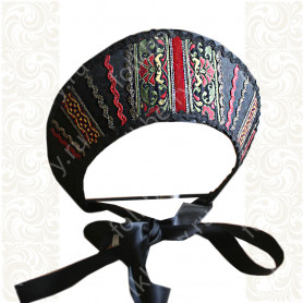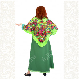 - Накидка из платочной ткани с крупными яркими цветами, по горловине и на манжетах украшена искусственным мехом.