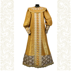 Материалы: габардин, парча, атлас или крепдешин, кружево, тесьма с люрексом.