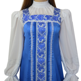 Декор платья - жаккардовая тесьма со славянскими символами. Талия немного завышена, пояс в комплекте.