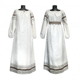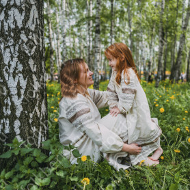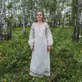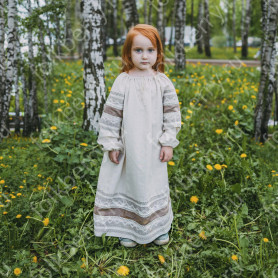 Платье сшито из натурального, умягченного льна с рисунком «Гжель».