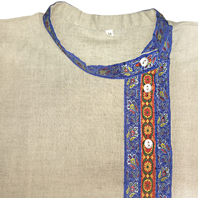 Рубаха Русский Стандарт сшита из плотного 100 % льна благородных цветов. Горловина украшена воротником-стойкой, посредине груди - планка с застежкой, рукав втачной с манжетами на пуговицах. Рубаха немного укороченная, без пояса. Благодаря фасону и плотной ткани, рубаха смотрится свежо и стильно с джинсами, и другими деталями современной одежды. Рубаха Русский Стандарт - прекрасно подойдет мужчинам для повседневной носки, а также будет выиграшно смотреться на праздничных мероприятиях.
