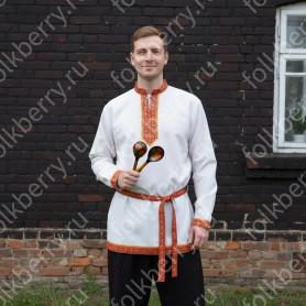Блуза может быть выполнена из белого атласа (более праздничный вариант) или из хлопка. Пышный рукав по запястью присборен резинкой и имеет декоративный манжет из жаккардовой тесьмы.