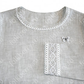 2. Оплечье (съемный круглый плоско лежащий воротник); украшено вологодским кружевом, бусинами, стеклянными стразами рубинового и кремового цвета цвета.